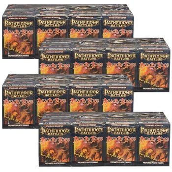 From fearsome hobgoblins and evil soldiers, slavers, and monstrous giants to rare “dungeon dressing” accessories that add realism and fun to your fantasy gaming, the friends and foes from the world of Golarion take to the tabletop in Deadly Foes! Introduced in 4-figure (one Large figure and three Medium or Small figures) Standard Boosters offered in 8-count bricks, Deadly Foes provides a legion of high-utility monsters and heroes suitable for any fantasy roleplaying campaign.