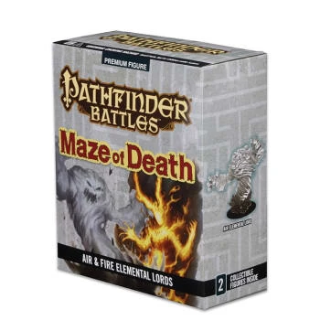 This fantastic Maze of Death Case Incentive set contains two beautiful display pieces that stands several inches tall and dwarf the other miniatures in the Pathfinder Battles: Maze of Death set. Included in each box are two ?Huge? creatures from the Pathfinder world: the mighty Fire Elemental Lord and Air Elemental Lord!