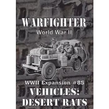 This set adds 56 cards to your Warfighter WWII North Africa game, including new UK Vehicles, UK Anti-Vehicle Hostiles, Action, Driving and Skills cards.