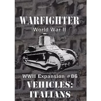 This set adds 56 cards to your Warfighter WWII Mediterranean game, including new Italian Squad Vehicles, Anti-Vehicle Hostiles, Action, Driving and Skills cards.
